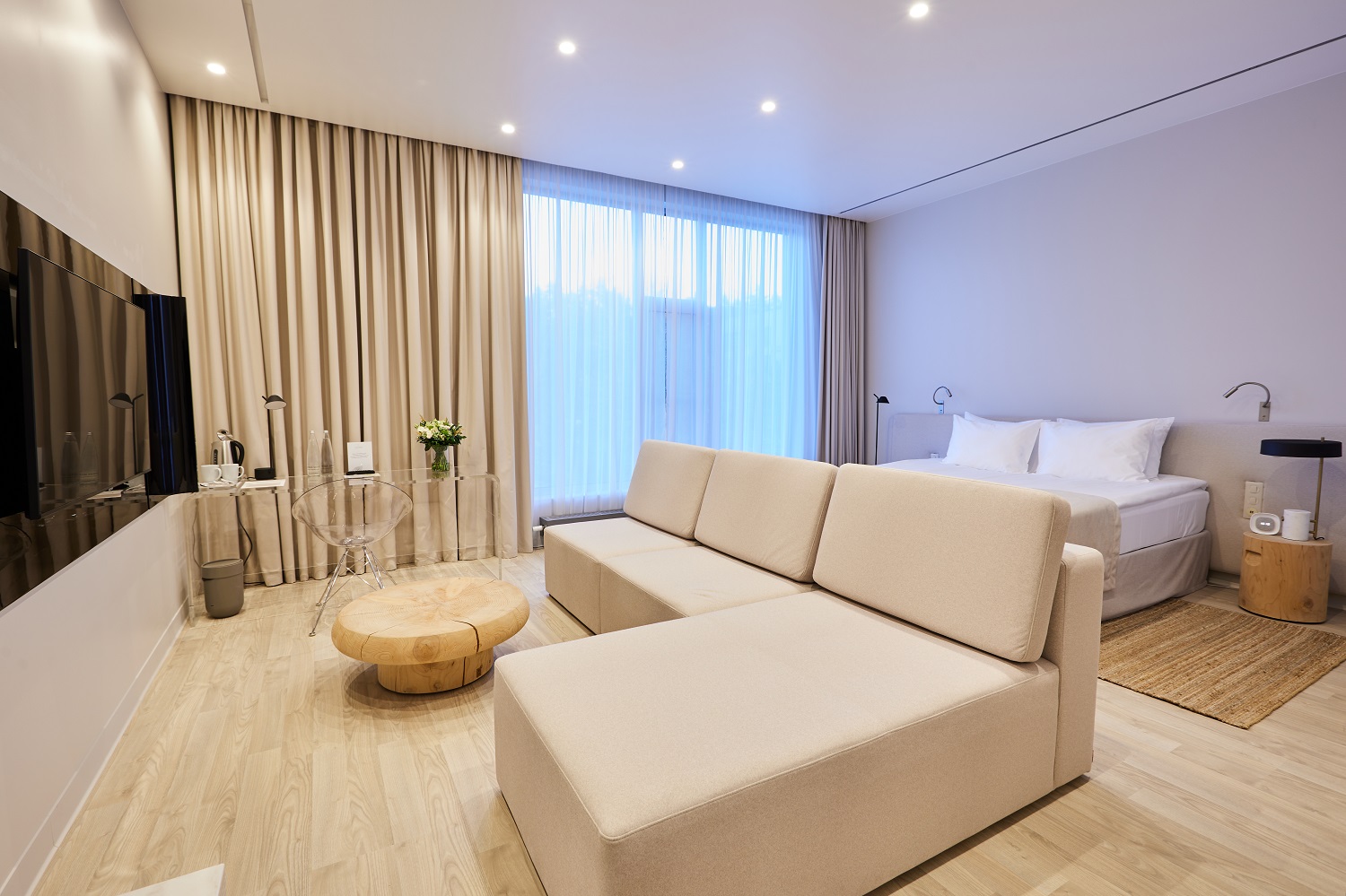 Оттенок Дуб Песочный идеально подходит для небольших комнат — такие молочные тона прекрасно расширяют пространство, добавляя комнате света и тепла.
